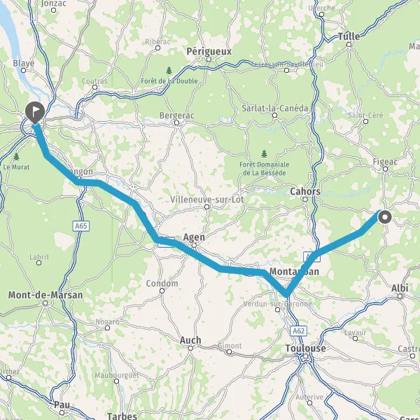 Prendre à droite et rejoindre A62 E72. Continuer sur 192 kilomètres
