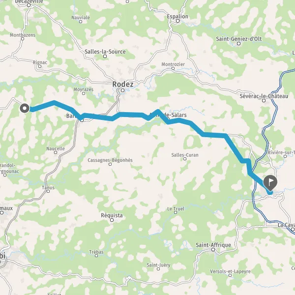 Tourner légèrement à gauche sur Avenue de Rodez et continuer sur 2,5 kilomètres