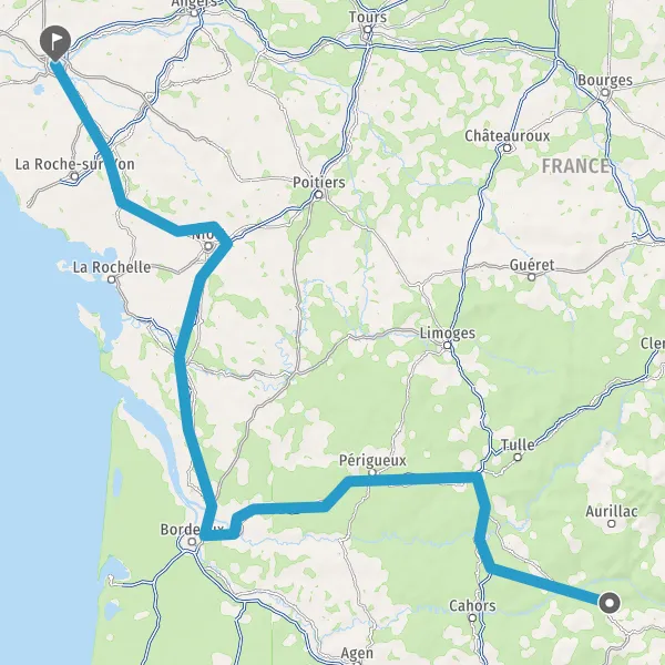 Prendre à droite et rejoindre A83. Continuer sur 150 kilomètres