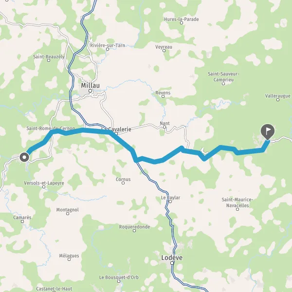 Au rond-point, prendre la 1ère sortie sur D999 (Route de Saint-Rome-de-Cernon à La Cavalerie) et continuer sur 6,2 kilomètres