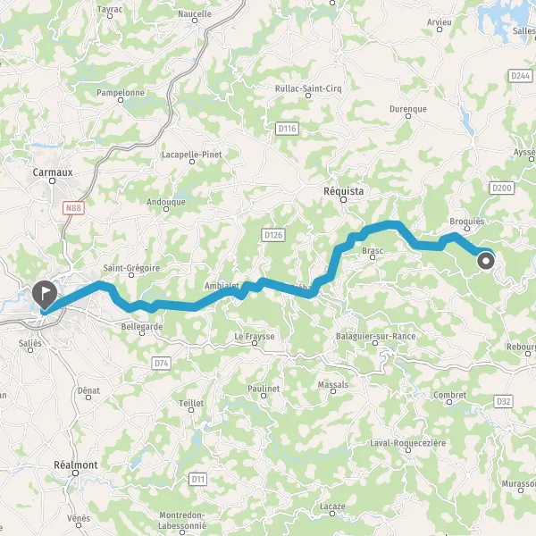 Tourner à droite sur D76 (Route d'Albi) et continuer sur 8,4 kilomètres