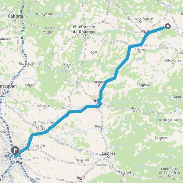Au rond-point, prendre la 3ème sortie sur N88 (Route d'Albi) et continuer sur 2,1 kilomètres