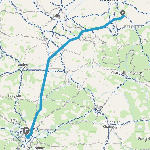 Continuer A1 A1 E19 E15 sur 129 kilomètres