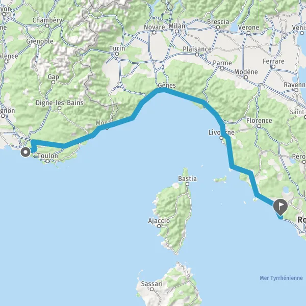 Tourner légèrement à droite sur E80 SS1 SS1 SS1 SS1 Strada 1 Strada 1 Strada 1 Strada 1 (Via Aurelia) et continuer sur 20 kilomètres