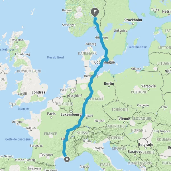 Prendre à droite et rejoindre A7 E714. Continuer sur 180 kilomètres