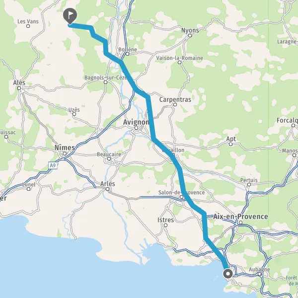 Tourner légèrement à droite sur D201 (Avenue de Provence) et continuer sur 10 kilomètres