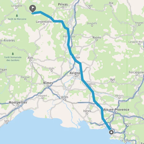 Au rond-point, prendre la 2ème sortie sur N102 (Route d'Aubenas) et continuer sur 8,4 kilomètres
