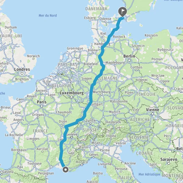 Prendre à droite et rejoindre A36. Continuer sur 236 kilomètres