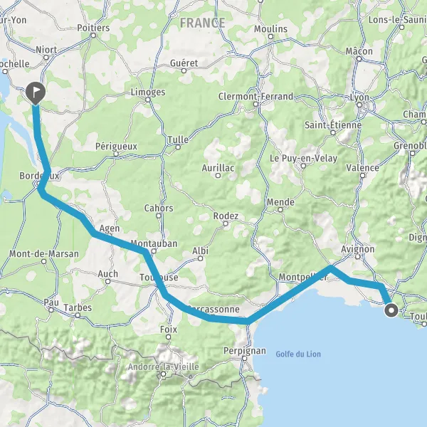 Prendre à droite et rejoindre A61. Continuer sur 136 kilomètres