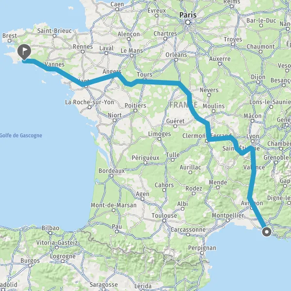 Prendre à droite et rejoindre A85 E604. Continuer sur 205 kilomètres