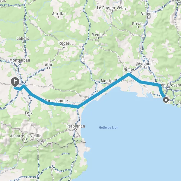 Prendre à droite et rejoindre A61. Continuer sur 136 kilomètres