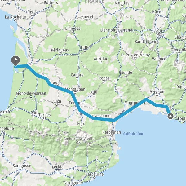 Prendre à droite et rejoindre A61. Continuer sur 136 kilomètres
