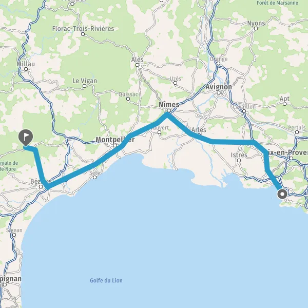 Prendre à droite et rejoindre D612 (Avenue de la Méditerranée). Continuer sur 5,8 kilomètres