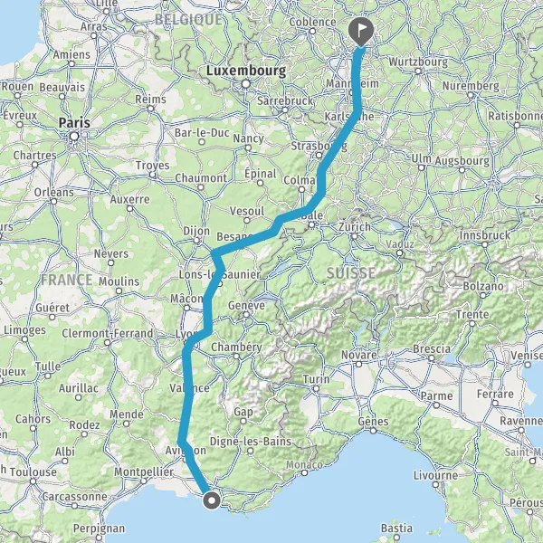 Prendre à droite et rejoindre A36 E60. Continuer sur 196 kilomètres