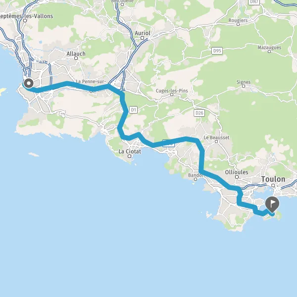 Payer 3,30 € (Péage Tunnel Prado Carénage) Payer 2,60 € (Péage La Ciotat) Payer 2,60 € (Péage Bandol) 1,3 km