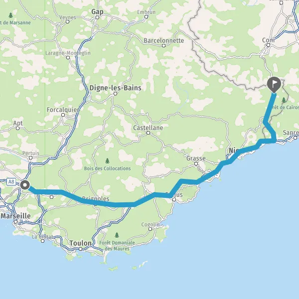 A8GapAvignonMarseilleFréjusSaint-RaphaëlAubagneToulon