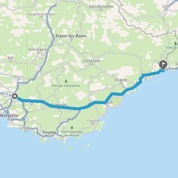 A8GapAvignonMarseilleFréjusSaint-RaphaëlAubagneToulon