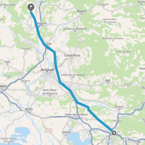 Au rond-point, prendre la 2ème sortie sur D7n (Route d'Avignon) et continuer sur 2,4 kilomètres