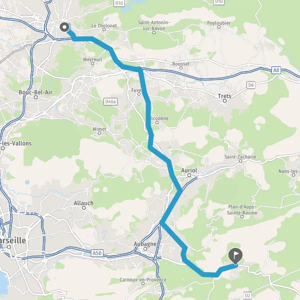 Sortir et rejoindre D2 (Route de Gémenos). Continuer sur 350 mètres
