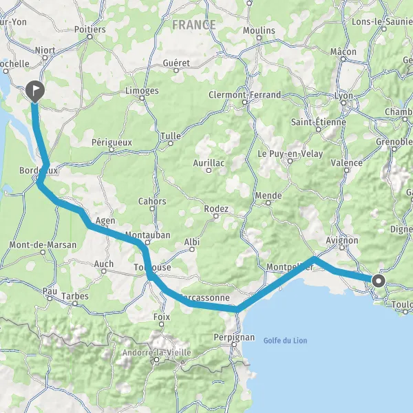 Prendre à droite et rejoindre A61. Continuer sur 136 kilomètres