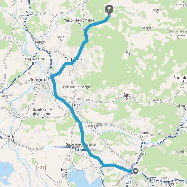 Continuer D942 (Route de Carpentras) sur 15 kilomètres