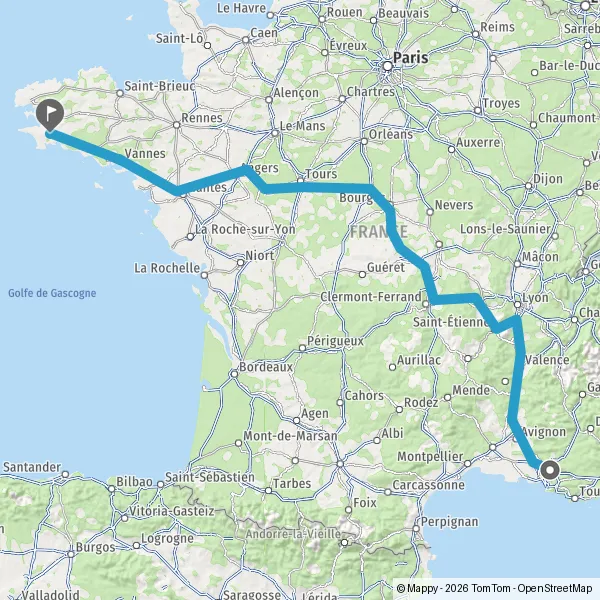 Prendre à droite et rejoindre A83. Continuer sur 150 kilomètres