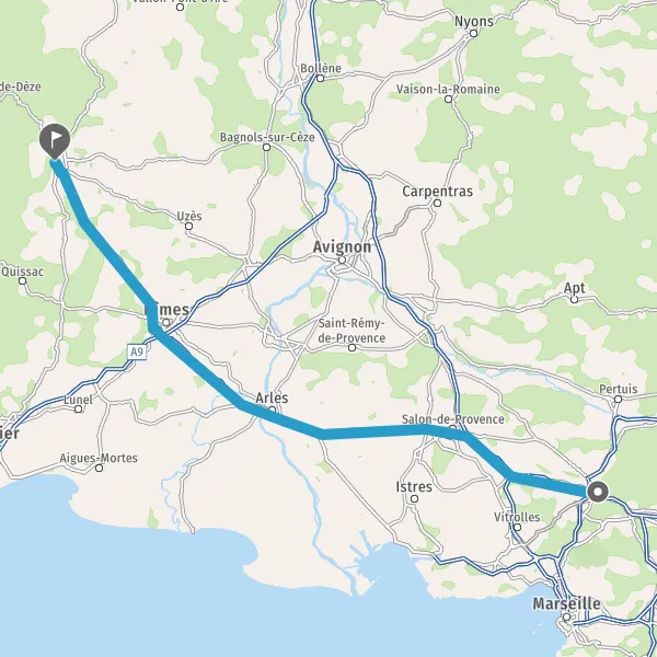 A8GapAvignonMarseilleFréjusSaint-RaphaëlAubagneToulon