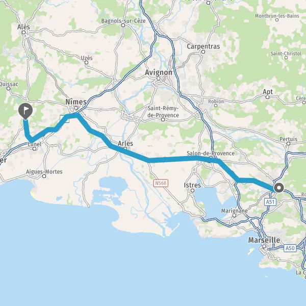 A8Salon-de-ProvenceAvignonNîmesLa Fare-les-OliviersBerre-l'Etang