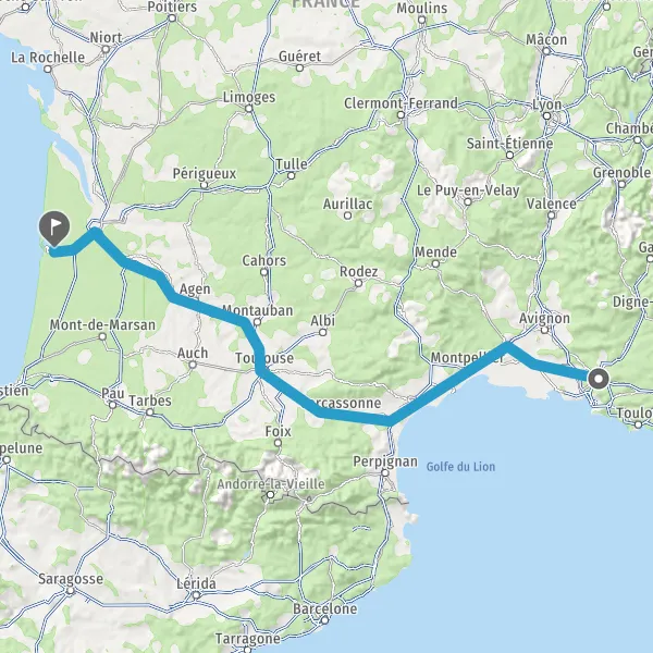 Prendre à droite et rejoindre A61. Continuer sur 136 kilomètres