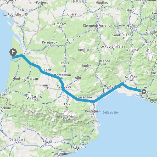 Prendre à droite et rejoindre A61. Continuer sur 136 kilomètres