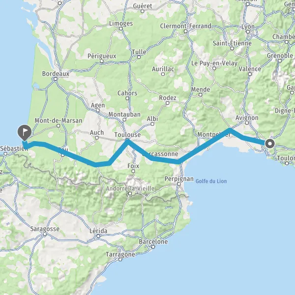 Prendre à droite et rejoindre A61. Continuer sur 136 kilomètres