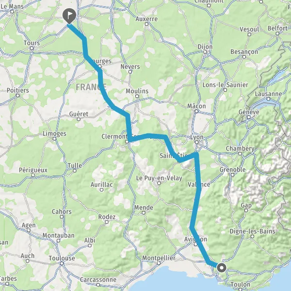 Prendre à droite et rejoindre A72. Continuer sur 53 kilomètres