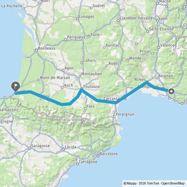 Payer 1,80 € (Péage Muret) Prendre un ticket (Péage Lestelle) Payer 22,40 € (Péage Sames) 392 km