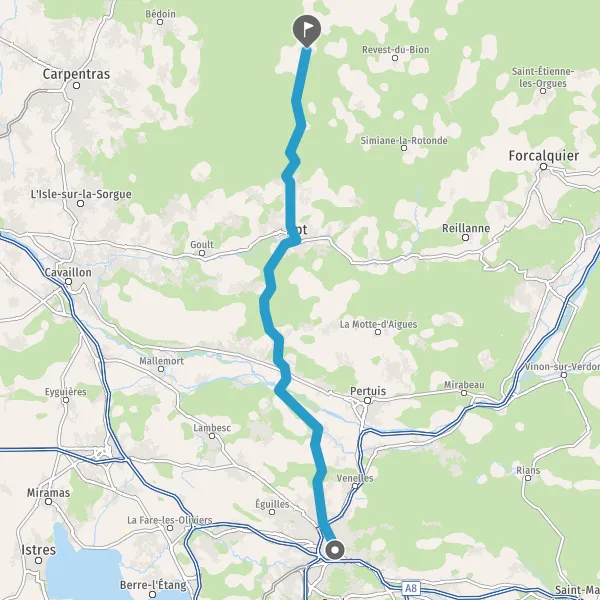 Tourner légèrement à gauche sur D14 (Route du Puy-Sainte-Réparade) et continuer sur 4 kilomètres