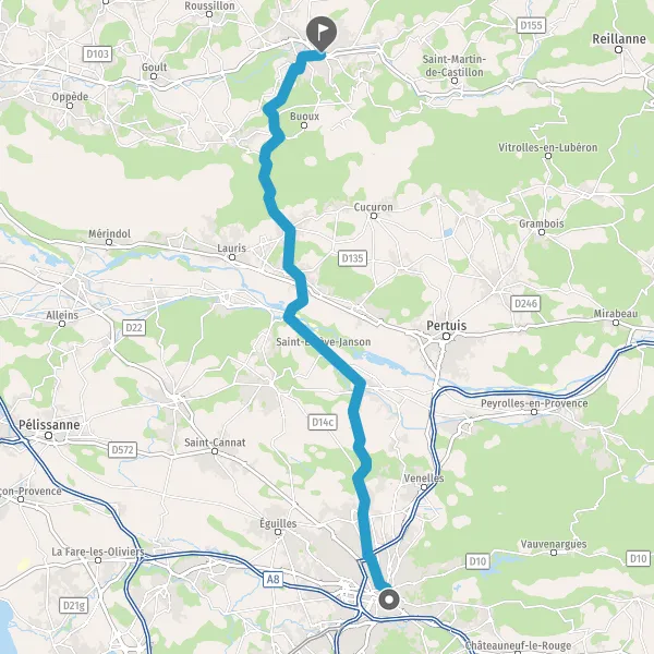 Tourner légèrement à gauche sur D14 (Route du Puy-Sainte-Réparade) et continuer sur 4 kilomètres