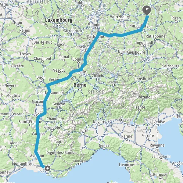 Prendre à droite et rejoindre A36 E60. Continuer sur 196 kilomètres