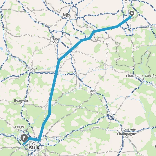 Continuer A1 A1 E19 E15 sur 108 kilomètres