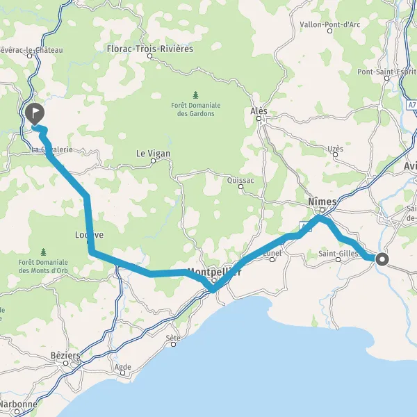 Au rond-point, prendre la 2ème sortie sur D612 (Route de Sète) et continuer sur 800 mètres