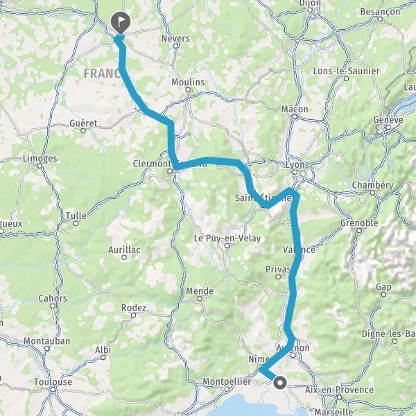 Prendre à droite et rejoindre A72. Continuer sur 53 kilomètres
