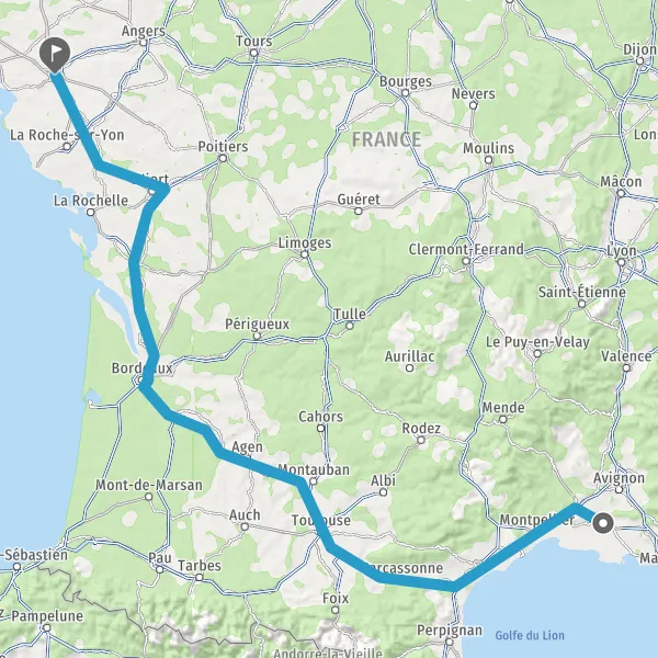 Prendre à droite et rejoindre A83. Continuer sur 150 kilomètres