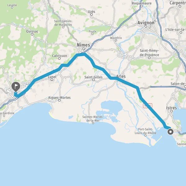 Au rond-point, prendre la 3ème sortie sur N568 (Route d'Arles) et continuer sur 1,8 kilomètre