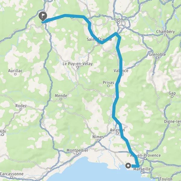 Prendre à droite et rejoindre A72. Continuer sur 53 kilomètres