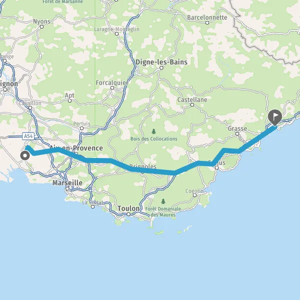 Payer 2,00 € (Péage Coudoux) Prendre un ticket (Péage La Barque) Payer 17,70 € (Péage Capitou) Payer 3,50 € (Péage Antibes Pleine Voie) 30,7 km