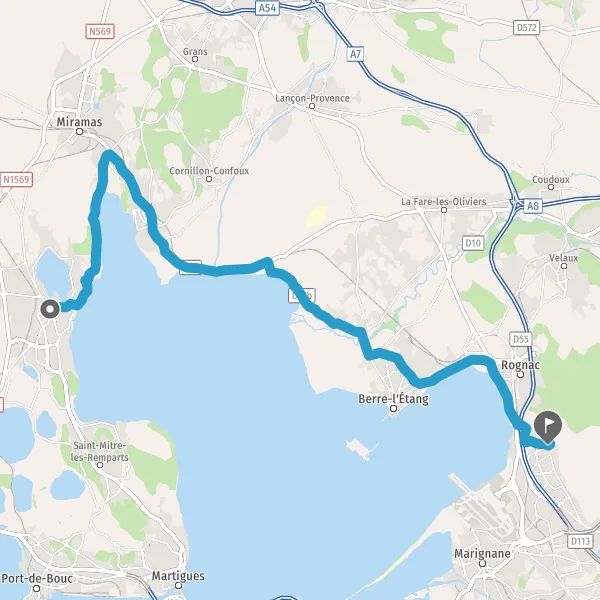 Au rond-point, prendre la 1ère sortie sur D21b (Route de Saint-Chamas) et continuer sur 2,3 kilomètres