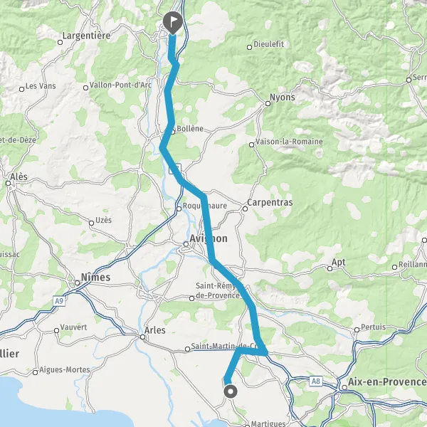 Prendre à droite et rejoindre N569 (Avenue Adam de Craponne). Continuer sur 200 mètres