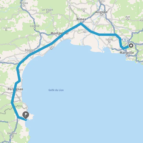 Prendre à droite et rejoindre A8 E80. Continuer sur 29 kilomètres