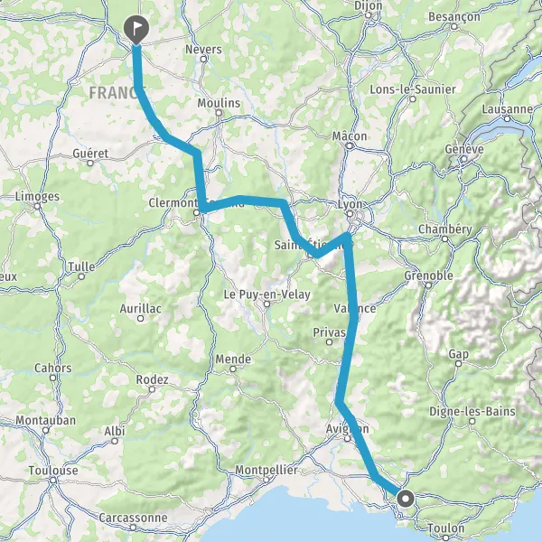 Prendre à droite et rejoindre A72. Continuer sur 53 kilomètres