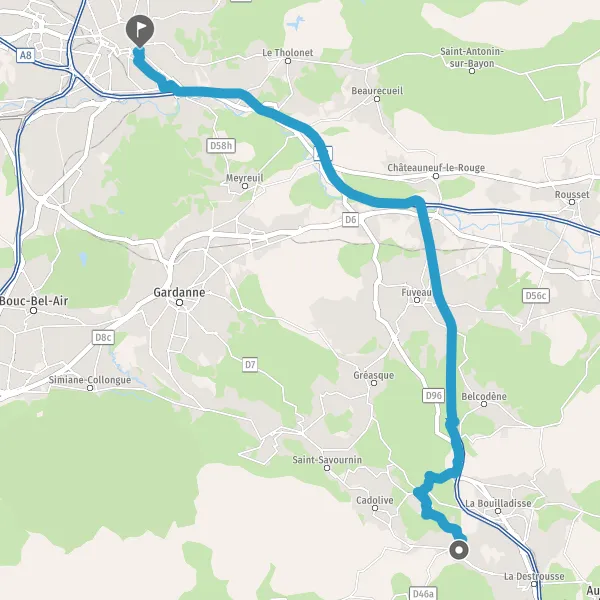 Venir à Aix en Provence. En voiture : A8, la Provençale axe Cannes (153 km), Nice (176 km) et Menton – frontière Italienne (208 km). A51, autoroute du Val de Durance axe Marseille (32 km) et Sisteron – en direction des Alpes (103 km). Connexion avec A7 / A6, autoroute du Soleil axe Avignon ( 88 km), Lyon ( 297 km) et Paris (759 km), A52 / A50 axe Aubagne (35 km), Toulon (84 km), A54 axe Arles (75 km), Nîmes (105 km) et Montpellier (154 km). En covoiturage : L’Automobile Club d’Aix-en-Provence et du Pays d’Aix propose une plateforme virtuelle de rencontre pour faciliter les déplacements. En train : A 3 heures de Paris et un peu plus d'une 1 heure de Lyon, Aix-en-Provence est connectée à la France entière grâce au TGV Méditerranée ainsi qu'à l'Europe. La ville dispose également d'une gare en centre ville qui dessert Marseille, Gardanne, Manosque, Sisteron. En autocar : la gare routière se trouve à proximité de la gare ferroviaire et à moins de 500 m du centre ville.