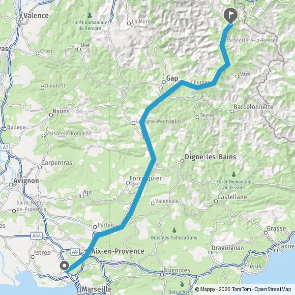 Prendre à droite et rejoindre A51 E712. Continuer sur 3,3 kilomètres