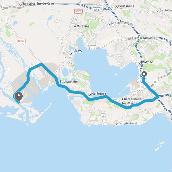 Au rond-point, prendre la 2ème sortie sur D9 (Route de Martigues) et continuer sur 1,1 kilomètre